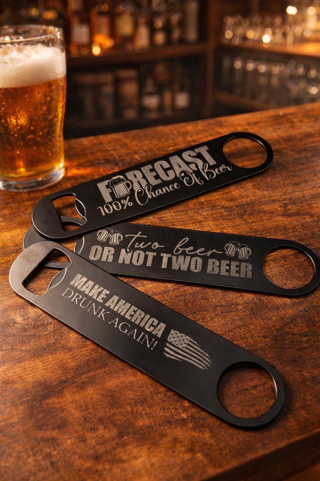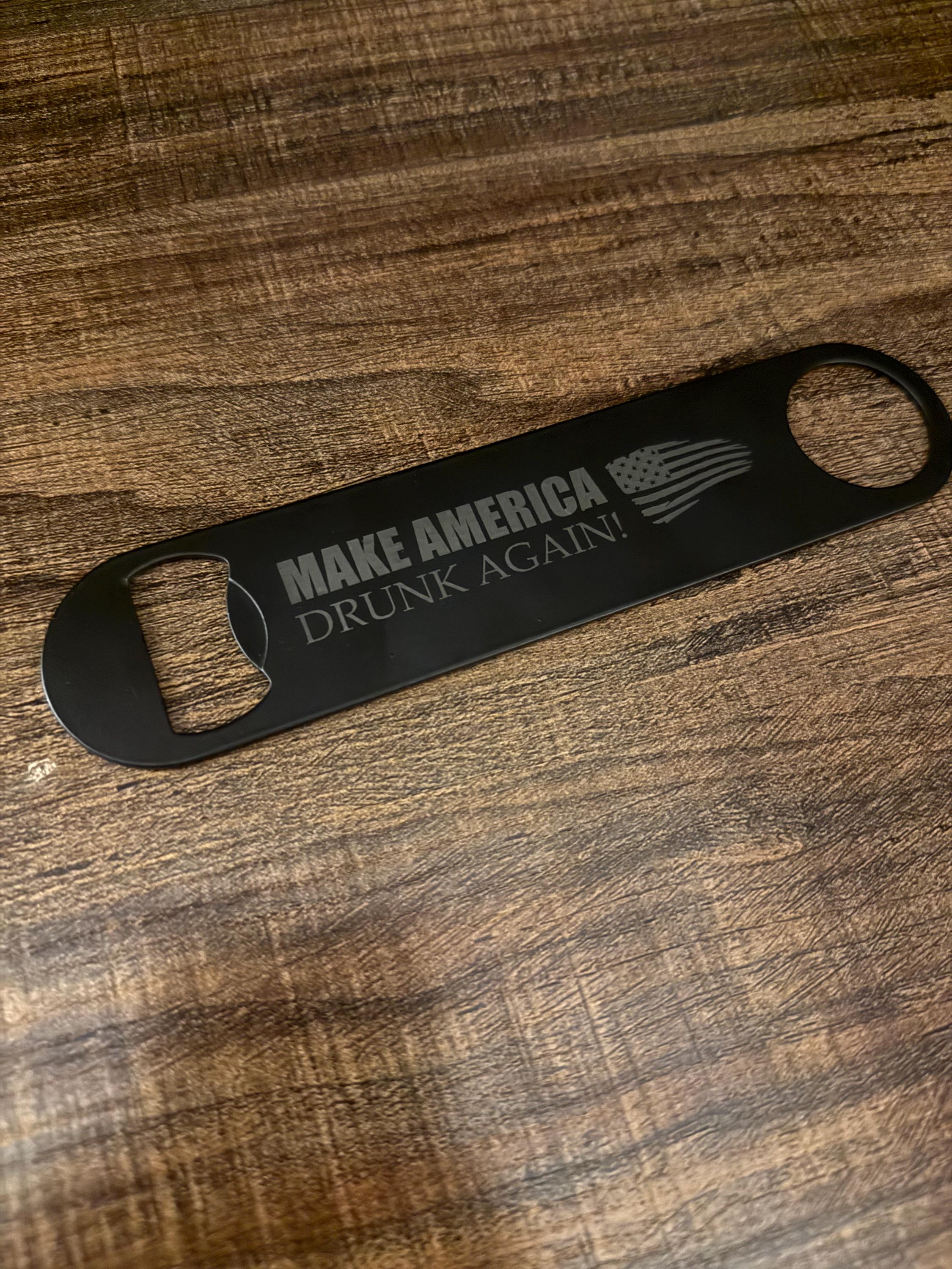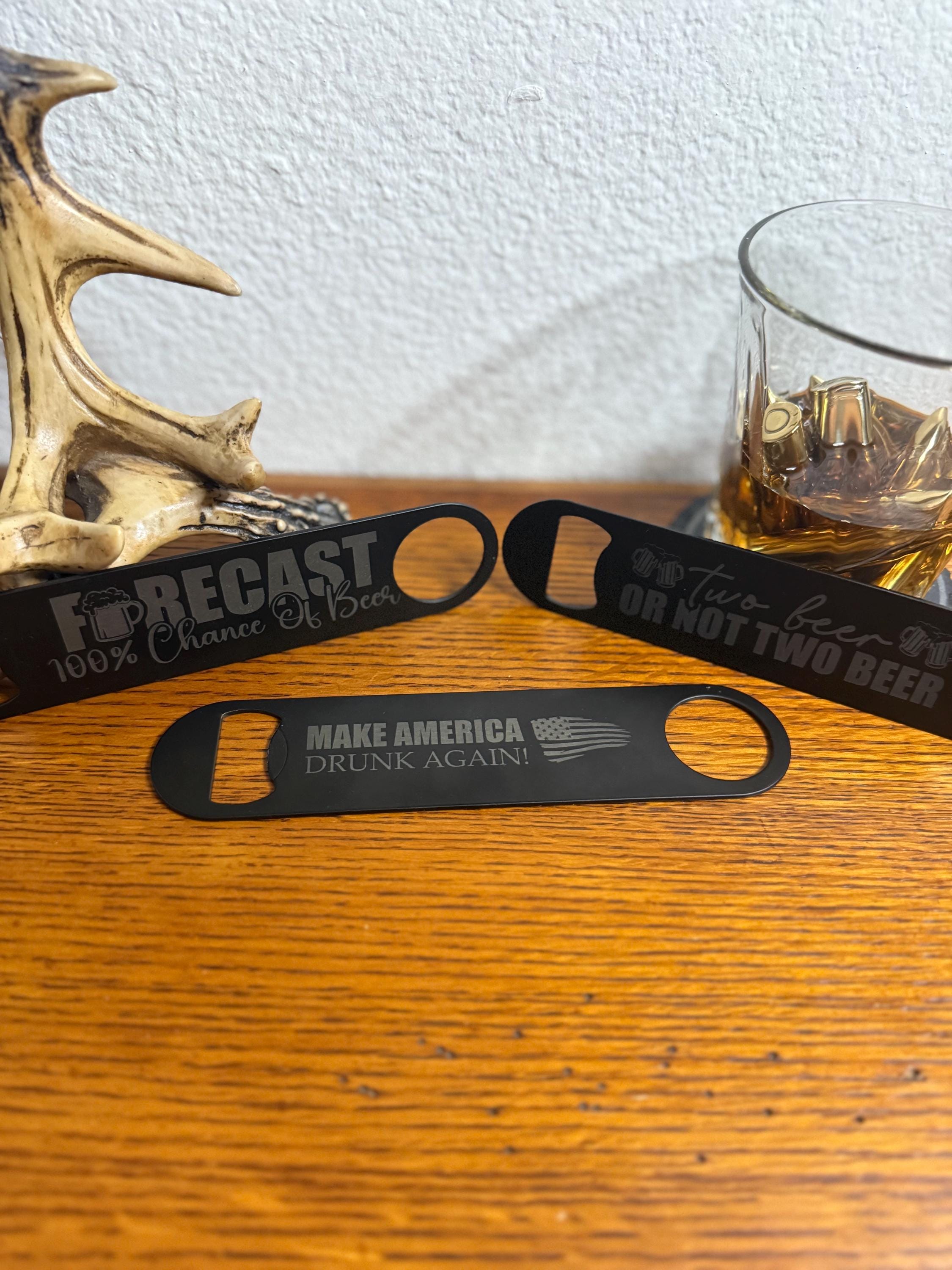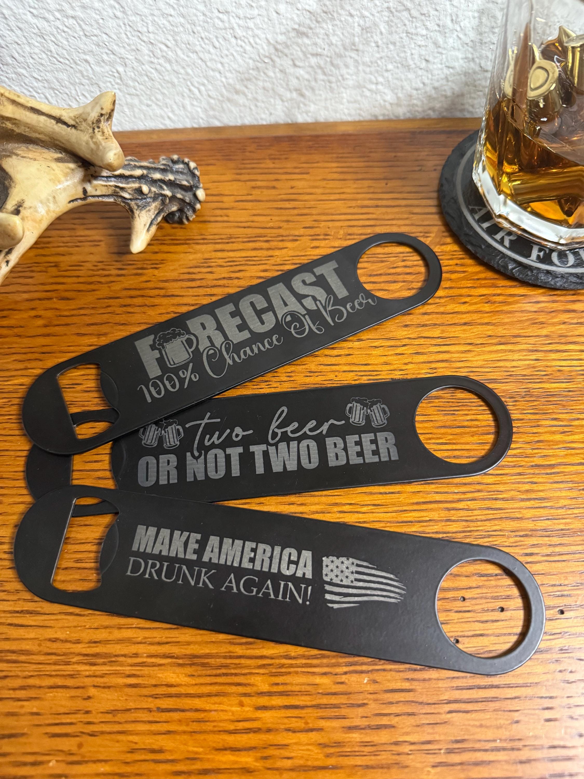 Add some personality to your bar with this funny laser engraved bottle opener. Made from durable black stainless steel, this classic bartender-style bar blade is built to last and designed for beer lovers, bartenders, and anyone who enjoys a good drink with friends.