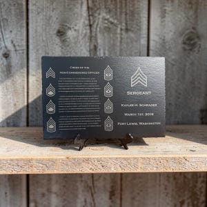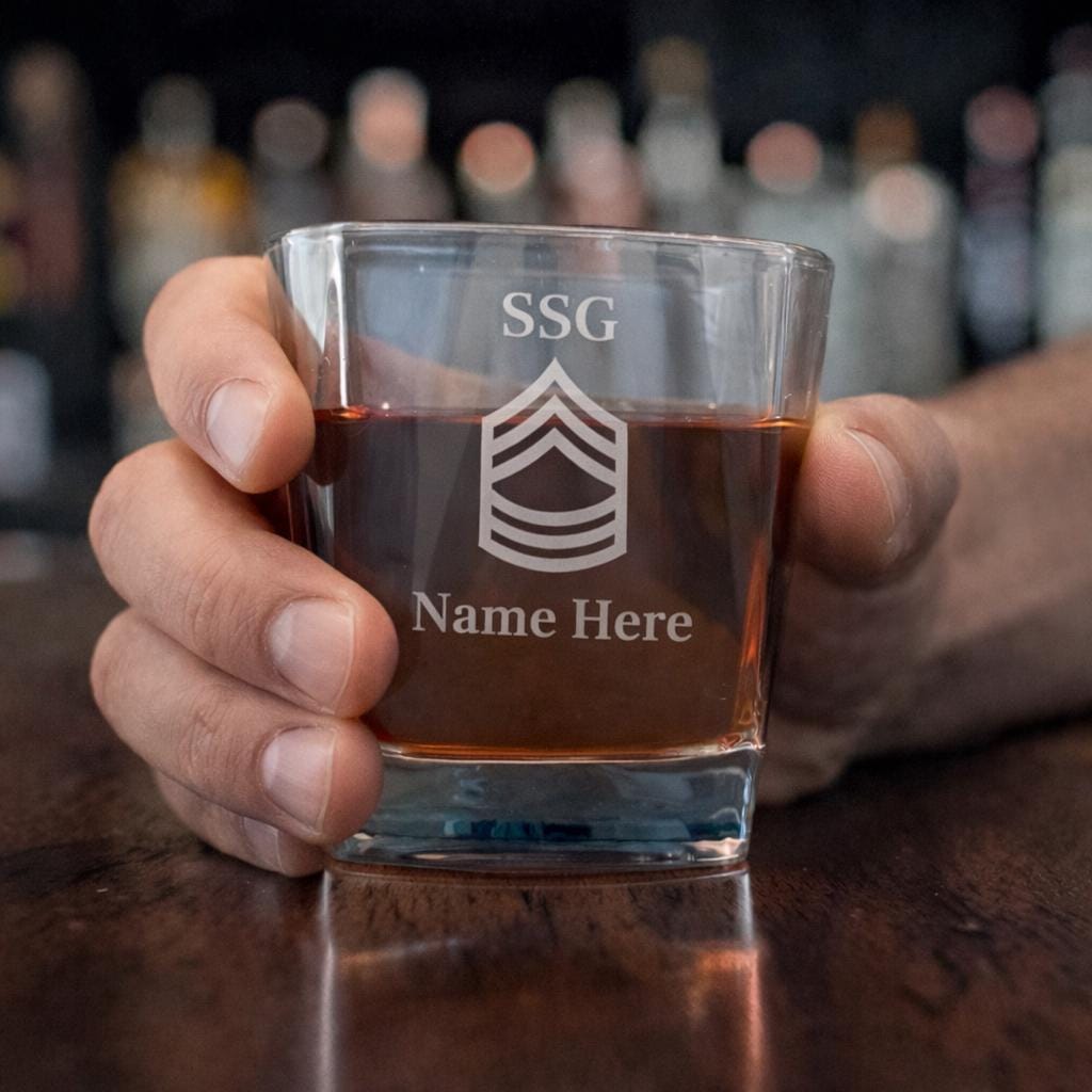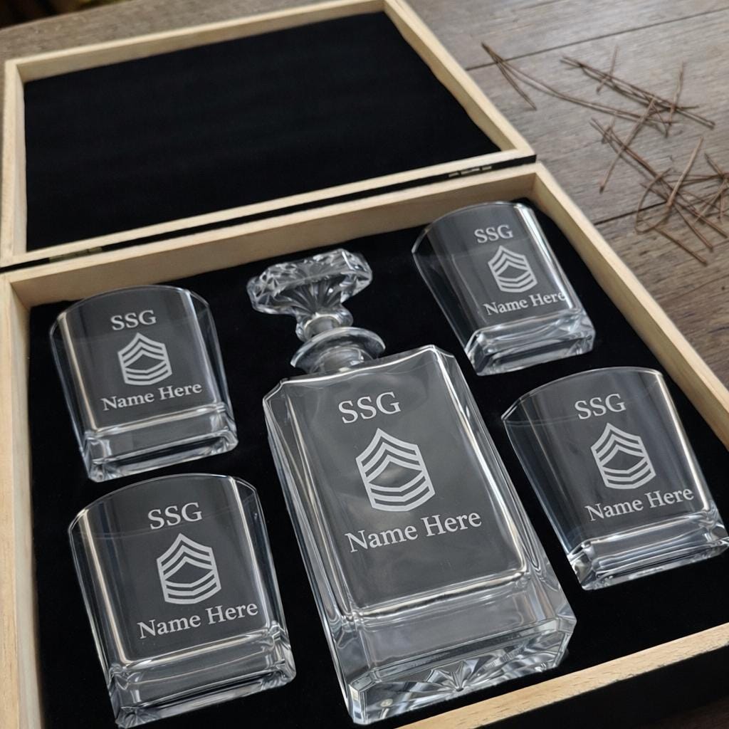 Perfect for Staff Sergeants, Sergeant First Class, Master Sergeants, and other NCO leaders, this set makes a standout display in any home bar, office, or man cave.